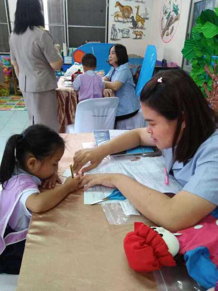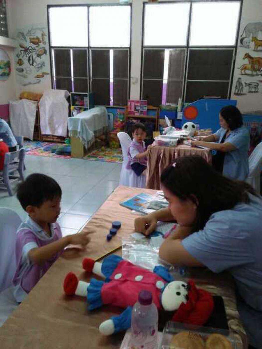 คุณหมอจากโรงพยาบาลนครพิงค์ได้มาตรวจพัฒนาการเด็กอนุบาลตั่งแต่อายุ3-5ปี S:0