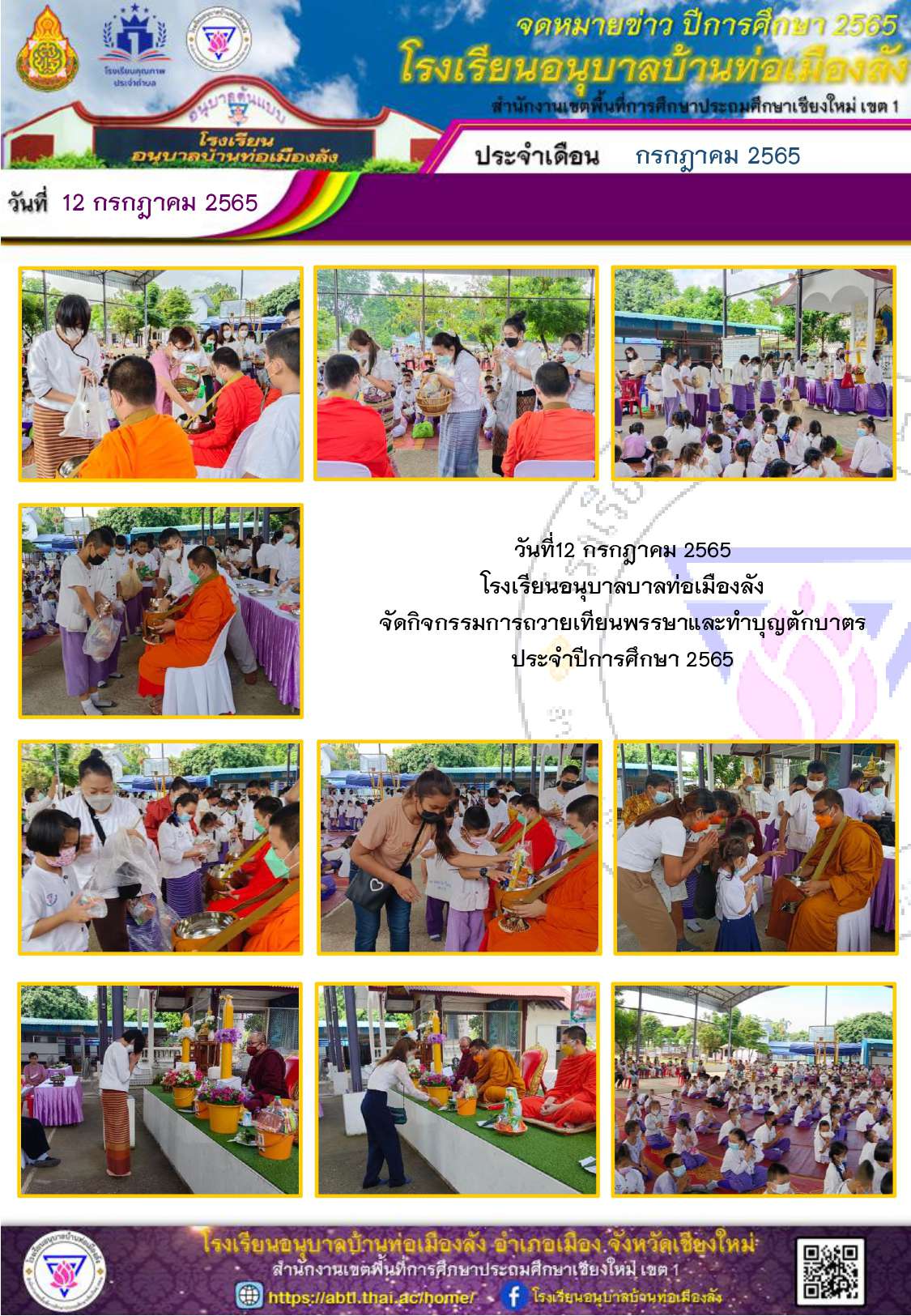 กิจกรรมถวายเทียนพรรษาและทำบุญตักบาตร ประจำปีการศึกษา 2565