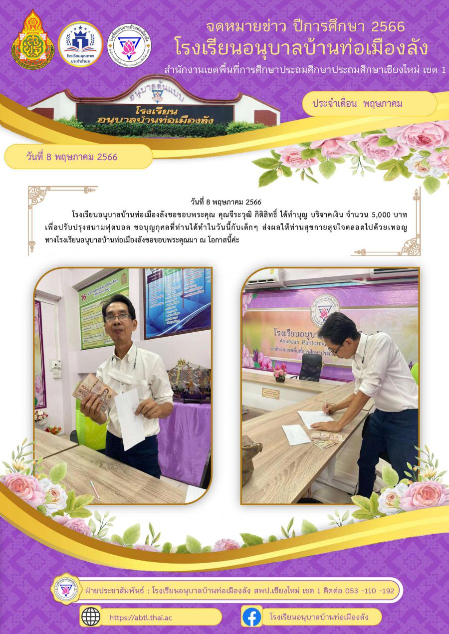 คุณจีระวุฒิ กิติสิทธิ์ บริจาคเงินเพื่อปรับปรุงสนามฟุตบอล