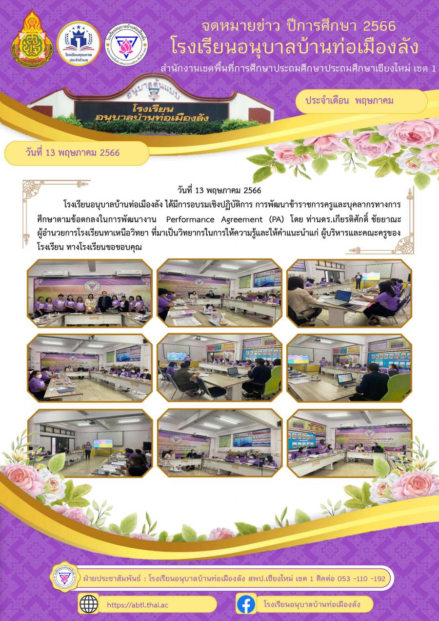 การอบรมเชิงปฏิบัติการ การพัฒนาข้าราชการครูและบุคลากรทางการศึกษาตามข้อตกลงในการพัฒนางาน (PA)