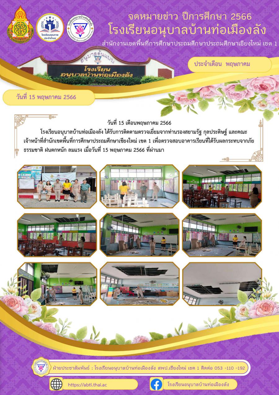 สพป.เชียงใหม่ เขต 1 เข้าตรวจเยี่ยมโรงเรียนที่ได้รับผลกระทบจากภัยธรรมชาติ