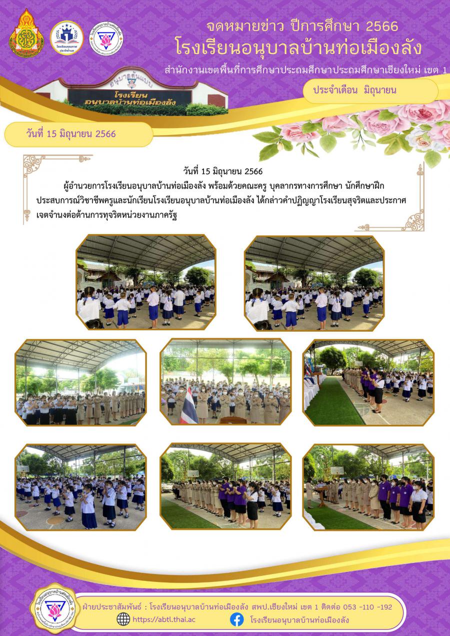 พิธีกล่าวคำปฏิญญาโรงเรียนสุจริตและประกาศเจตจำนงต่อต้านการทุจริต